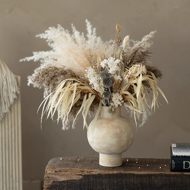 Material: Pampas grass, eucalyptus, wheat stalk, terracotta, hydrangea, air-dried.
