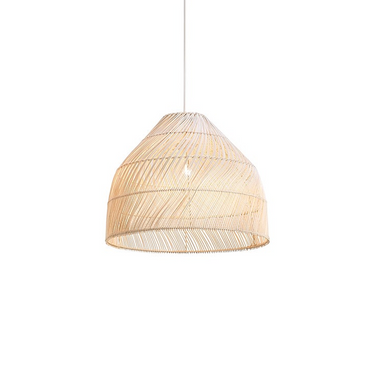 Intricately woven bamboo pendant light, using traditional Japanese weaving methods. This delightful union of wavy, flowy curves crates a boho statement at your home.