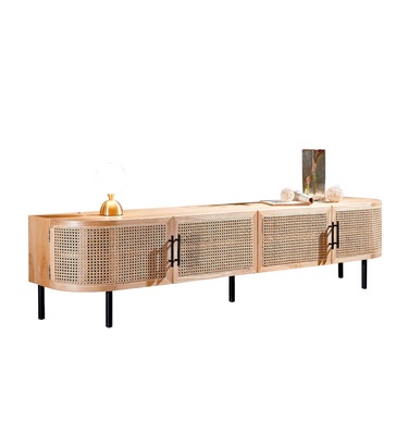 Material: Solid American ash wood, Kalimantan hand-braided soft-close rattan doors, carbon steel legs and handles.