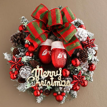Material: Flame-retardant PVC leaves, natural pine cone, natural cotton flower, ribbon, bell, faux mistletoe