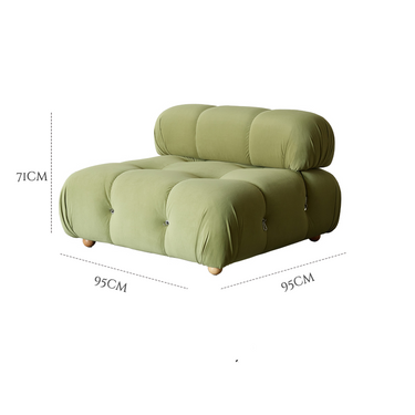Modern green plush tufted sectional sofa with rounded cushions, ideal for stylish home décor