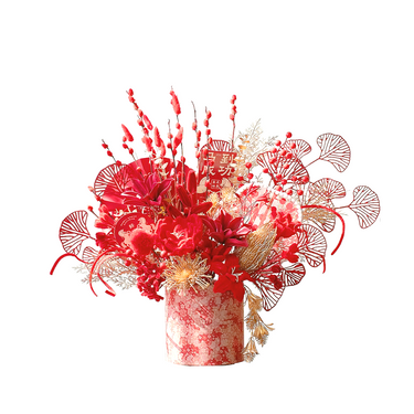 Material: Silk, pipe cleaner, PVC flower. Fabric flower container with silk embroidery.