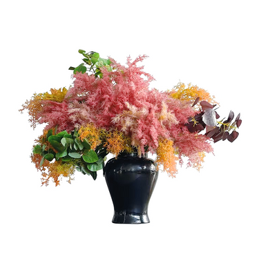 Material: Silk flower, PVC stalk/grass. Black vase is included.