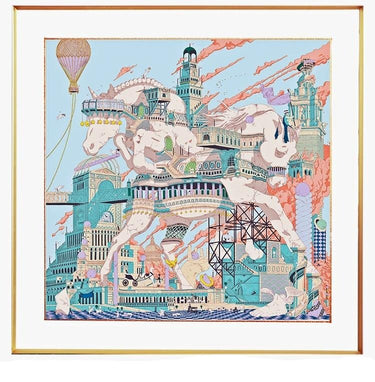 Inspired by Eastern European folklore and the motifs of its traditional costumes, this framed scarf is printed on silk, and well framed with tempered glass.