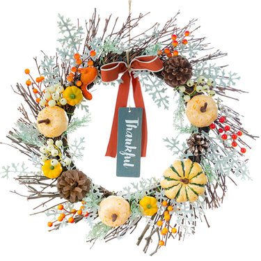 Material: Natural tree branches, natural pine cone, faux berries, faux pumpkin.