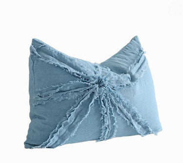 Beige decorative throw pillow with textured frayed fabric design, stylish home décor cushion